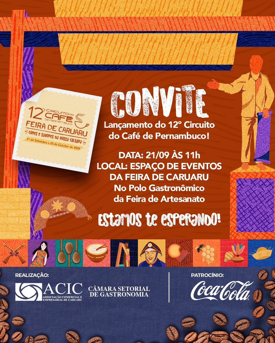 “De tudo que há no mundo nela tem pra vender”. Os versos escritos por Onildo Almeida demonstram a grandiosidade da Feira de Caruaru, a homenageada do 12º Circuito do Café de Pernambuco, realizado pela Associação Comercial e Empresarial de Caruaru (Acic), através da Câmara Setorial de Gastronomia, com o patrocínio da Coca Cola. O evento que mistura café e cultura terá a participação de 10 estabelecimentos com receitas preparadas exclusivamente para a edição, que acontecerá de 21 de setembro a 20 de outubro. Além disso, haverá sorteio de prêmios para os que conquistarem os carimbos da rota gastronômica.