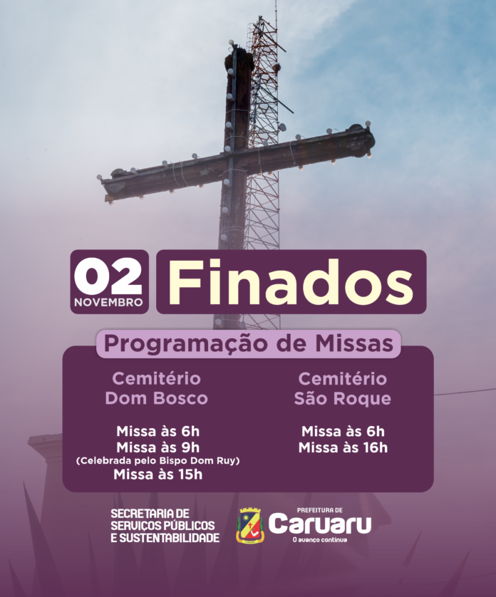 Em homenagem ao Dia de Finados, celebrado no próximo sábado (2), os cemitérios públicos de Caruaru receberão uma programação especial de missas. Ao todo, serão cinco celebrações, sendo três no Cemitério Dom Bosco e duas no Cemitério São Roque.