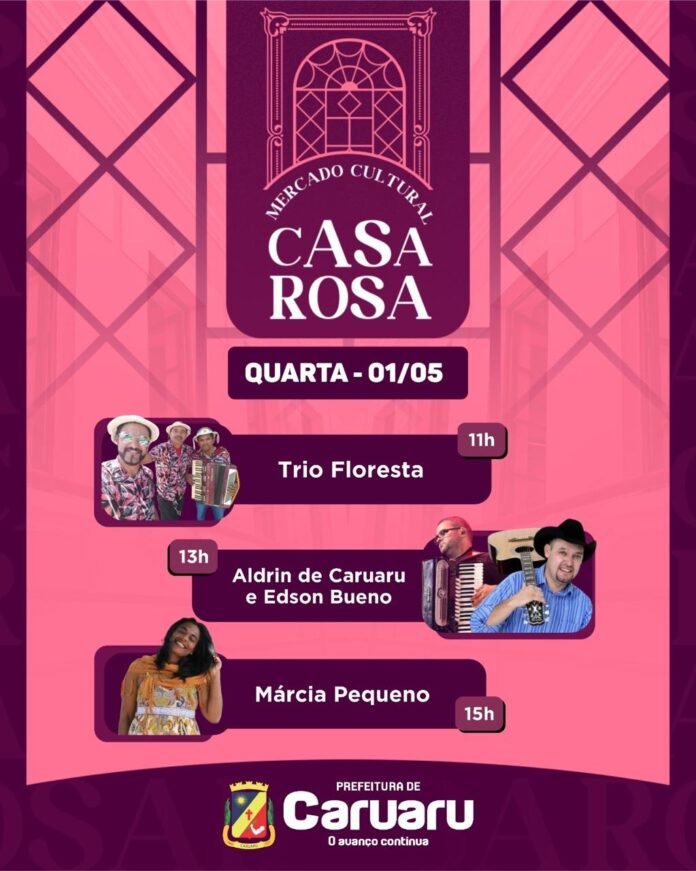 Nesta quarta-feira (1º), feriado do Dia do Trabalhador, várias atrações musicais irão movimentar o Mercado Cultural Casa Rosa, em Caruaru. O local, que além de ser um ponto de concentração da cultura, dispõe de um ambiente amplo, com excelente estrutura física e espaço infantil.