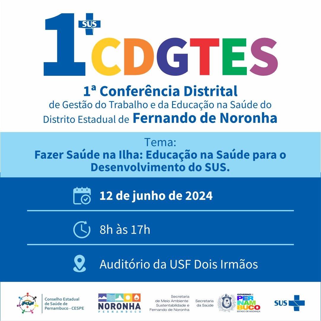 Pela primeira vez acontece no arquipélago a Conferência Distrital de Gestão do Trabalho e da Educação na Saúde do Distrito Estadual de Fernando de Noronha. Com o tema “Fazer Saúde na Ilha: Educação em Saúde para o Desenvolvimento do SUS”, o evento vai ser realizado nesta quarta, dia 12 de junho, no auditório da Unidade Básica de Saúde Dois Irmãos, das 8h às 17h.