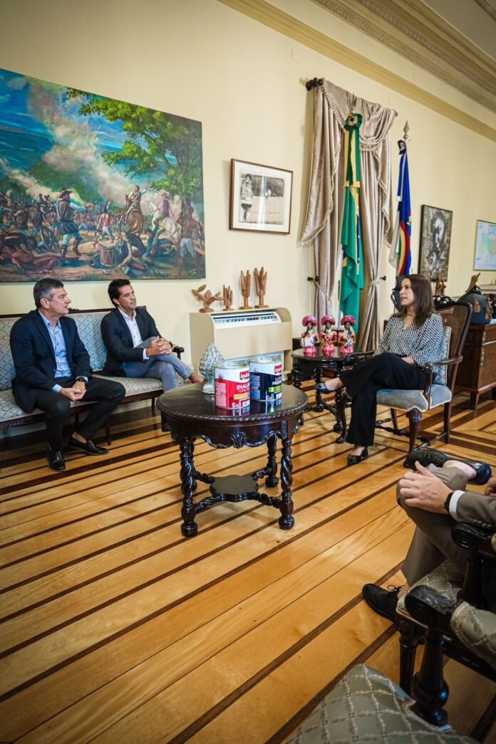 O Palácio do Campo das Princesas, localizado no bairro de Santo Antônio, no Recife, receberá manutenção da pintura em toda a sua estrutura. A iniciativa é fruto de uma parceria entre o Governo de Pernambuco e a empresa pernambucana de tintas Iquine. Nesta terça-feira (27), a governadora Raquel Lyra recebeu membros da diretoria da companhia para celebrar a doação dos materiais. O serviço atenderá ao prédio principal, que é sede do Executivo estadual, e os dois prédios anexos laterais.