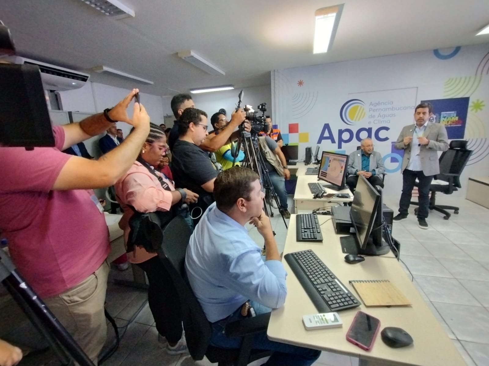 Diante dos impactos observados da situação crítica de estiagem que já afeta mais da metade dos municípios pernambucanos, uma atualização sobre este quadro e um detalhamento das medidas que já vêm sendo empreendidas para enfrenta-lo foram dados, numa entrevista coletiva, ocorrida nesta segunda-feira (30), na sala de situação da Agência Pernambucana de Águas e Clima, Apac, no bairro de Santo Amaro, no Recife. Até o momento, 94 municípios pernambucanos decretaram situação de emergência. A maioria deles, inclusive, teve reconhecimento oficializado, por meio de Portaria do Ministério da Integração e Desenvolvimento Regional – MIDR, consolidando-se, assim, um cenário de escassez de recursos hídricos, que, por sua vez, compromete o abastecimento d’água e traz reflexos diretos nas condições de vida da população e na economia local.