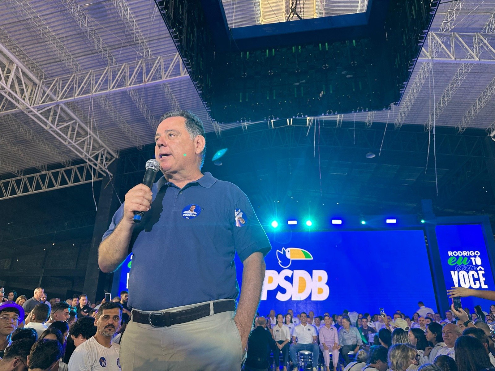 “Vim aqui para abraçar esse jovem prefeito trabalhador e competente, que hoje mostra sua força, nesta convenção repleta de apoiadores. Rodrigo, conte comigo, com o seu partido, conte com o PSDB nacional”, celebrou Marconi.
