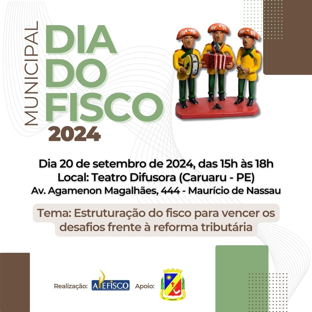 Nesta sexta-feira, 20, o procurador-geral do Ministério Público de Contas de Pernambuco (MPC-PE), Ricardo Alexandre, participa do Dia do Fisco Municipal 2024, que será realizado no Shopping Difusora, em Caruaru, das 15h às 18h. O evento é promovido pela Associação Pernambucana dos Fiscos Municipais (Apefisco).