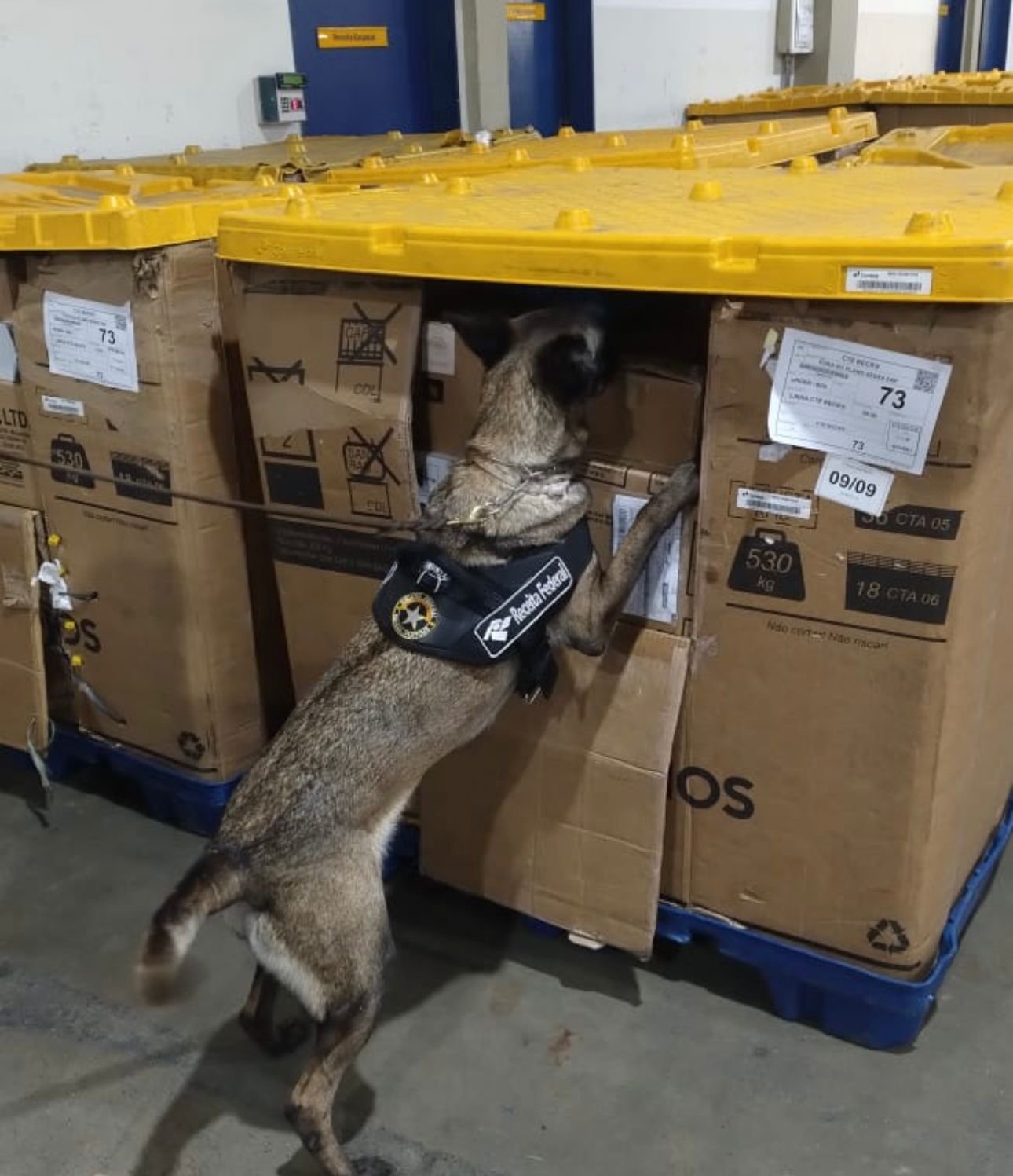 A substância ilícita, que estava em uma encomenda postal e foi declarada como suplemento alimentar, foi detectada pela agente canina Ursa, da Receita Federal, que com seu faro apurado, apontou certeiramente a encomenda com a droga disposta em meio a milhares de outros objetos.