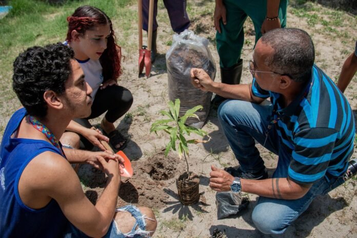 As espécies de Urucum, Oitizeiro, Mangueira e Saboneteira, receberão cuidados e atenção dos jovens, que aprenderam técnicas de cultivo e plantio de mudas e poderão aplicar o conhecimento aprendido para transformar a paisagem da região, além de contribuir com a preservação do bioma da localidade. No Recife, o Centro de Juventude de Santo Amaro também recebeu uma equipe da Semas nesta terça-feira (22), onde os participantes tiveram a oportunidade de plantar oito mudas no local, além de receber direcionamentos sobre cuidados com o meio ambiente e como a prática afetará o futuro das juventudes.