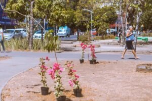 As equipes da Sesp estão atuando nos jardins com o plantio de mudas ornamentais resistentes ao clima seco e de mais de 80 árvores nativas. A intervenção busca valorizar um dos pontos mais tradicionais da cidade, promovendo conforto térmico, beleza e bem-estar para moradores, trabalhadores e visitantes que circulam pela área.