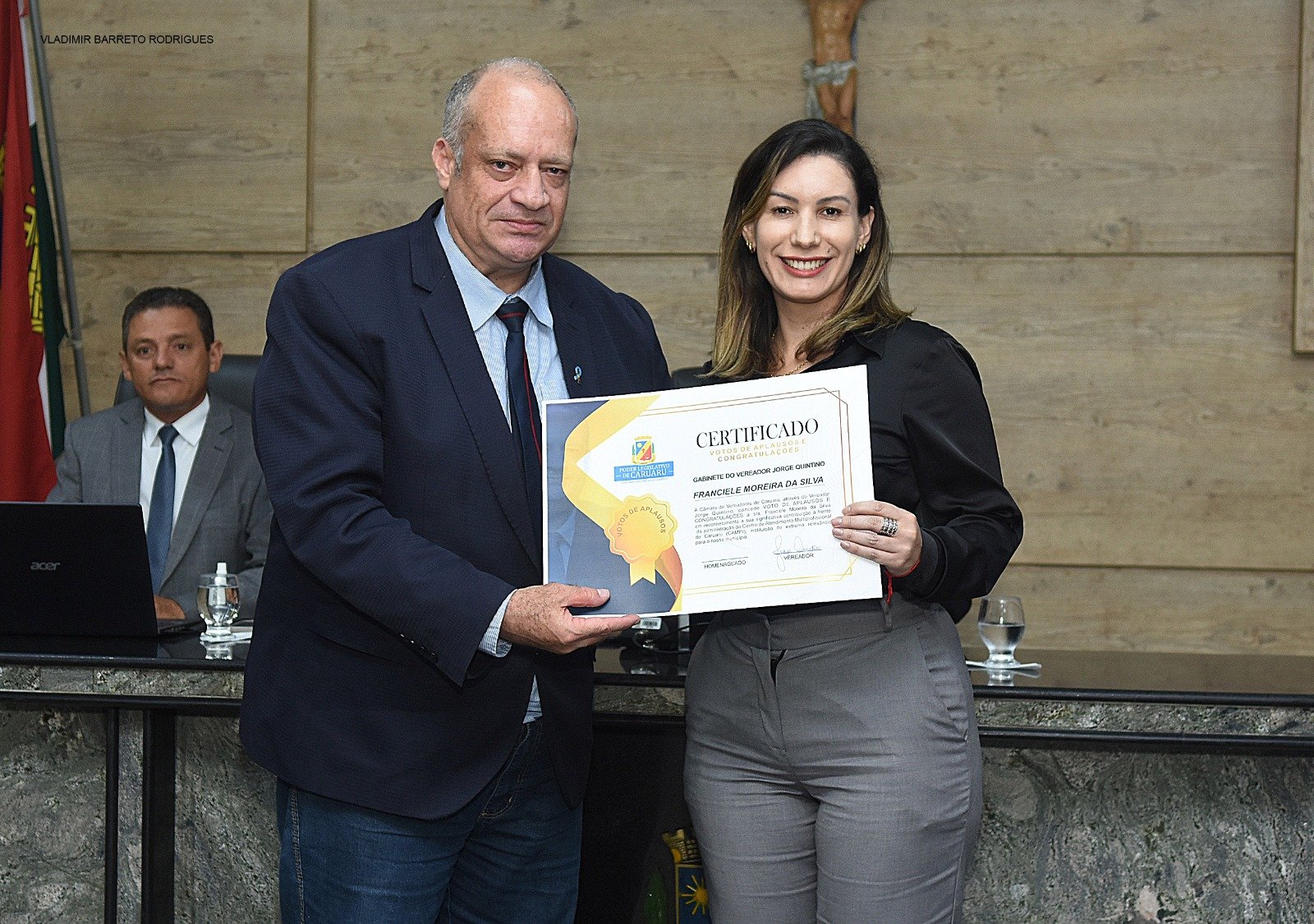 Além das discussões administrativas, a sessão foi marcada por homenagens. O vereador Professor Jorge Quintino (Pode) destacou o trabalho da administradora Franciele Moreira à frente do Centro Multiprofissional de Desenvolvimento Infantil CAMP, enaltecendo a importância da unidade na inclusão e no desenvolvimento de crianças com necessidades especiais. Ele também frisou a necessidade de ampliação das vagas oferecidas pelo centro.