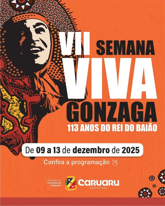 A Prefeitura de Caruaru, por meio da Fundação de Cultura, realiza, até o próximo sábado (13), a 7ª edição da Semana Viva Gonzaga, em celebração aos 113 anos de Luiz Gonzaga. A programação homenageia um dos maiores símbolos da música nordestina e reforça a importância de sua obra para a identidade cultural de Caruaru e de todo o Brasil.