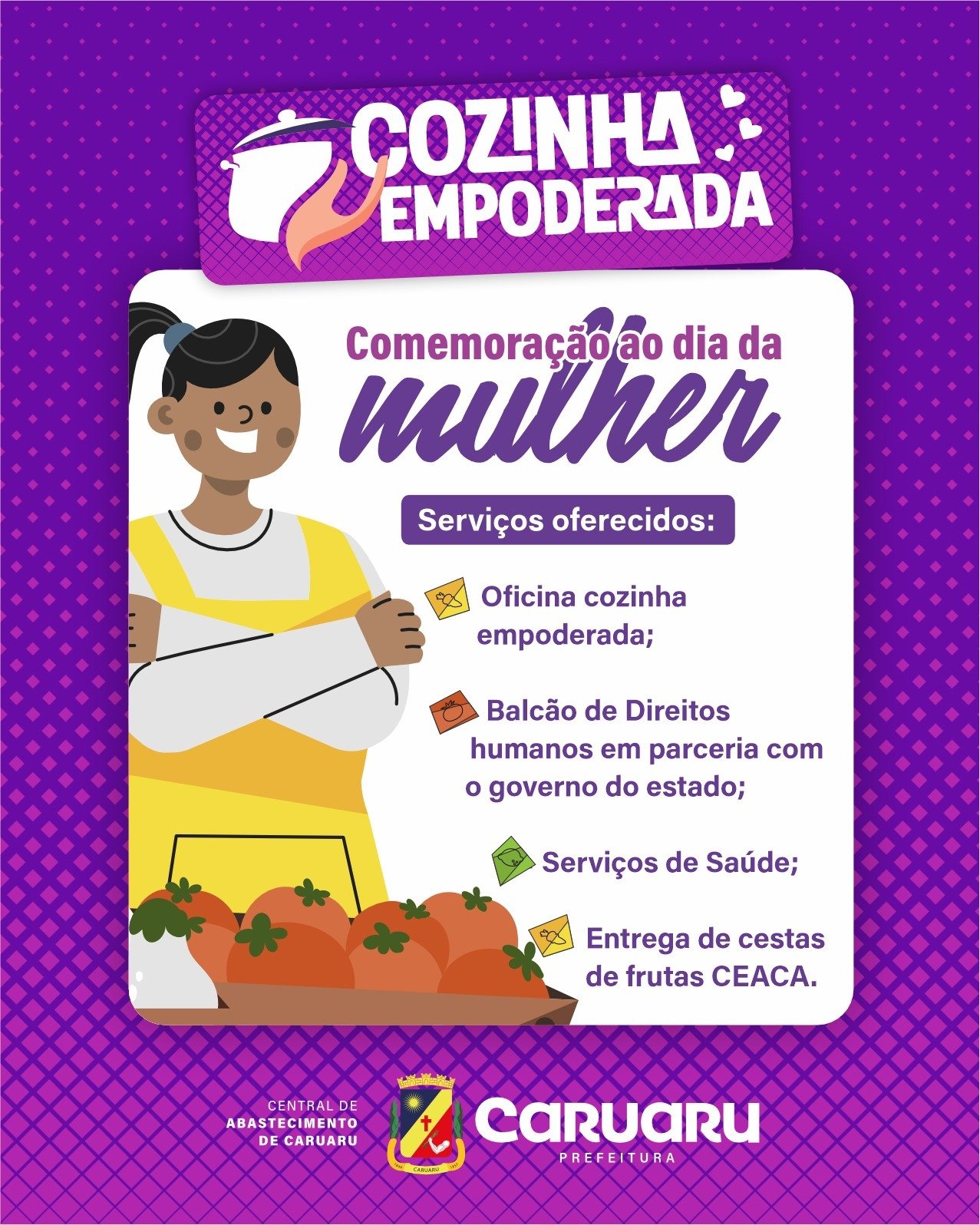 A Prefeitura de Caruaru, por meio da Central de Abastecimento de Caruaru (Ceaca), realiza, nesta quarta-feira (12), uma programação especial em alusão ao dia da mulher.
