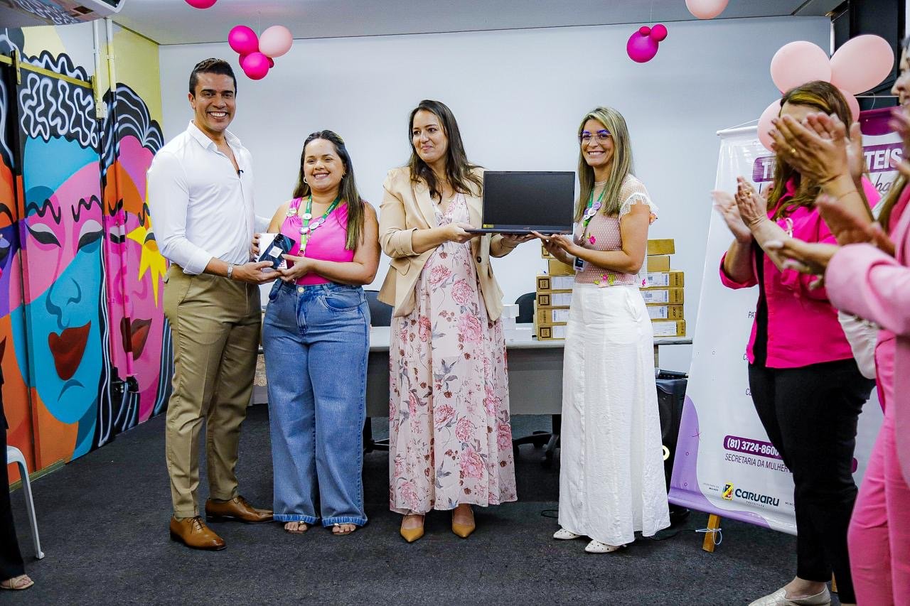 Para celebrar o fortalecimento dessas políticas, o encontro também foi marcado pela entrega de 15 notebooks e 8 celulares que irão reforçar o atendimento do Centro de Referência da Mulher Maria Neuma da Silva Lira (CRM). Os equipamentos foram conquistados a partir de um convênio entre a Prefeitura de Caruaru e o Ministério das Mulheres, por meio de edital de chamamento público no valor de R$ 250 mil, que também resultará na aquisição de uma viatura para o centro.