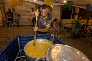 O ponto alto da festa foi a distribuição dos 100 litros da iguaria que dá nome ao evento, o famoso Pela Jegue — prato típico à base de xerém de milho com costela de porco, charque, calabresa, bacon e um tempero especial. Servido bem quente, o prato conquistou o paladar dos forrozeiros e reafirmou seu papel como símbolo de identidade e sabor no período junino.