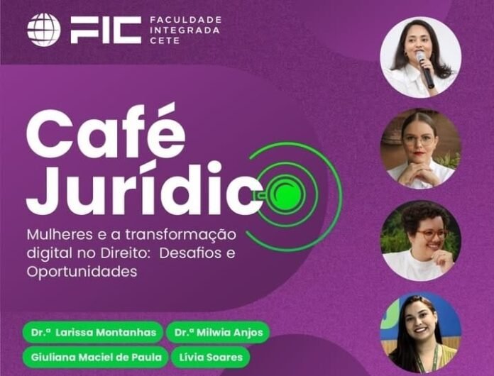 A FIC Garanhuns (Faculdade Integrada CETE) promove mais uma edição do Café Jurídico, nesta terça-feira (18/03). O encontro acontece a partir das 12h no espaço da Incubadora de Novas Ideias HUB FIC. O bate-papo aborda o tema “Mulheres e a Transformação Digital no Direito: Desafios e Oportunidades” e conta com a participação da advogada Larissa Montanhas (especialista em Direito Digital), da coordenadora e professora de Direito Milwia Anjos, da designer e arquiteta Giuliana Maciel de Paula e da Estrategista Digital e coordenadora de Marketing Lívia Soares.