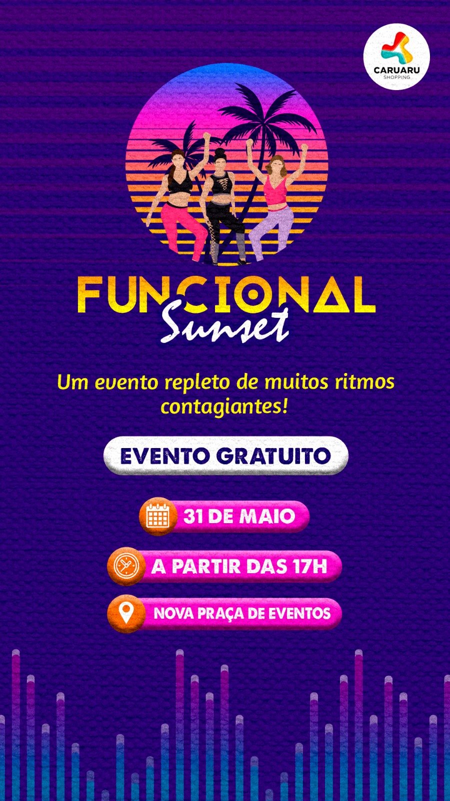 O Caruaru Shopping sediará, no próximo sábado (31), o Funcional Sunset. O encontro, que foi pensado para quem quer cuidar da saúde de forma leve, divertida e cheia de energia, acontecerá na Praça de Eventos, às 17h.
