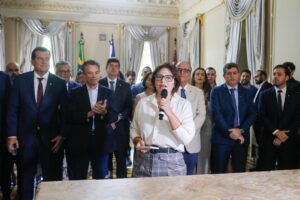 A governadora em exercício Priscila Krause comandou, na manhã desta segunda-feira (24), a cerimônia de posse de Emmanuel Fernandes, o Manuca, como novo secretário de Desenvolvimento Profissional e Empreendedorismo de Pernambuco. A solenidade aconteceu no Palácio do Campo das Princesas e, durante o evento, a gestora destacou a importância da pasta para o crescimento econômico do Estado e para a geração de novas oportunidades de trabalho para a população pernambucana.