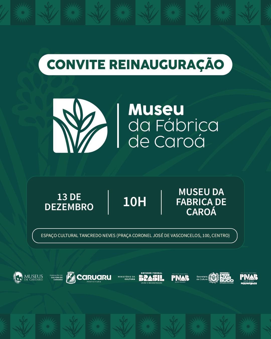 Após quatro anos desativado, o Museu da Fábrica de Caroá, em Caruaru, já tem data para reabrir para turistas e caruaruenses: 13 de dezembro, mesmo dia em que se comemora os 113 de nascimento de Luiz Gonzaga, o Rei do Baião. O projeto de requalificação e modernização do espaço foi feito pela Produção Inova – Conectando Histórias, por meio de incentivo da Política Nacional Aldir Blanc de Fomento à Cultura (PNAB).