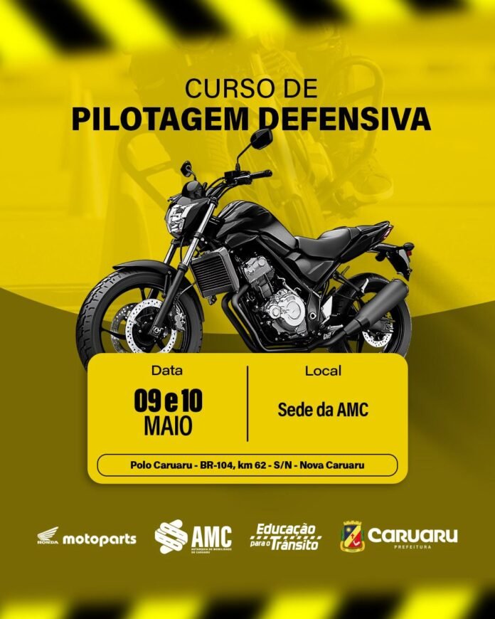 A Prefeitura de Caruaru, por meio da Autarquia de Mobilidade de Caruaru (AMC), irá ofertar, nos dias 09 e 10 de maio, mais um curso de pilotagem defensiva para motociclistas. Essas aulas fazem parte do cronograma de ações referentes ao Maio Amarelo.