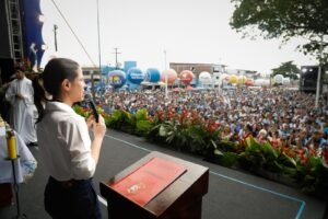 A governadora Raquel Lyra prestigiou, nesta segunda-feira (8), a 121ª edição da Festa de Nossa Senhora Imaculada Conceição, no Morro da Conceição, na Zona Norte do Recife. Esta foi a primeira edição do evento religioso após o Governo do Estado ter entregue, em maio deste ano, o templo totalmente restaurado após o desabamento que matou duas pessoas em agosto de 2024. A iniciativa da gestão estadual permitiu a retomada das celebrações com mais segurança e conforto para a comunidade. A vice-governadora Priscila Krause também participou das homenagens a Nossa Senhora da Conceição.