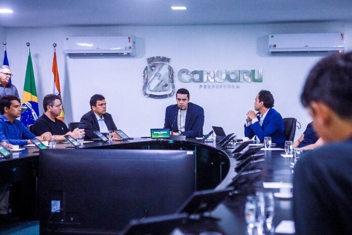 A Prefeitura de Caruaru, por meio da Secretaria de Desenvolvimento Econômico, Turismo, Tecnologia e Economia Criativa, realizou, nesta quinta-feira (15), uma reunião para celebrar os avanços do Polo de Desenvolvimento Sustentável do Agreste (PDSA), que atualmente abriga mais de 100 empresas, responsáveis por gerar mais de 5 mil empregos diretos e movimentar um faturamento anual superior a R$ 3 bilhões. O encontro contou com a presença do prefeito Rodrigo Pinheiro, autoridades locais e empresários, reforçando a importância da articulação entre o poder público e o setor produtivo para o desenvolvimento da região.