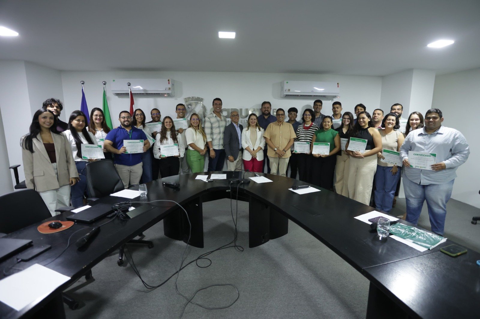 Ao todo, 26 técnicos do Governo Municipal foram certificados pelo prefeito Rodrigo Pinheiro, consolidando a profissionalização da administração pública local e elevando a gestão de projetos estratégicos a um novo patamar de excelência. “Hoje formamos a primeira turma da Academia de Projetos, dentro da proposta da nossa Escola de Governo Municipal. É uma ação inovadora no Brasil”, destacou o prefeito. “Os resultados terão impacto direto na gestão.”