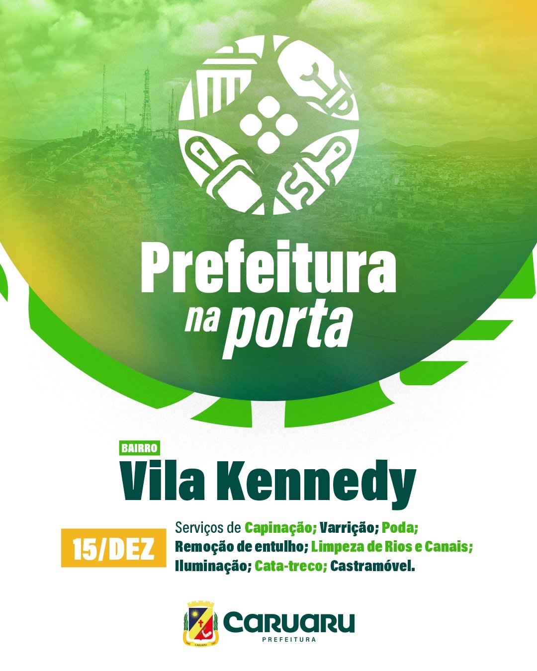 A Prefeitura de Caruaru realiza, a partir da desta segunda-feira (15), a última edição de 2025 do programa “Prefeitura na Porta”, que desta vez chega ao bairro Vila Kennedy. A ação, que se tornou uma das mais reconhecidas e solicitadas pela população, encerra o ano atingindo a marca de 10 edições, reforçando o compromisso da gestão com a zeladoria e o cuidado direto com os bairros.