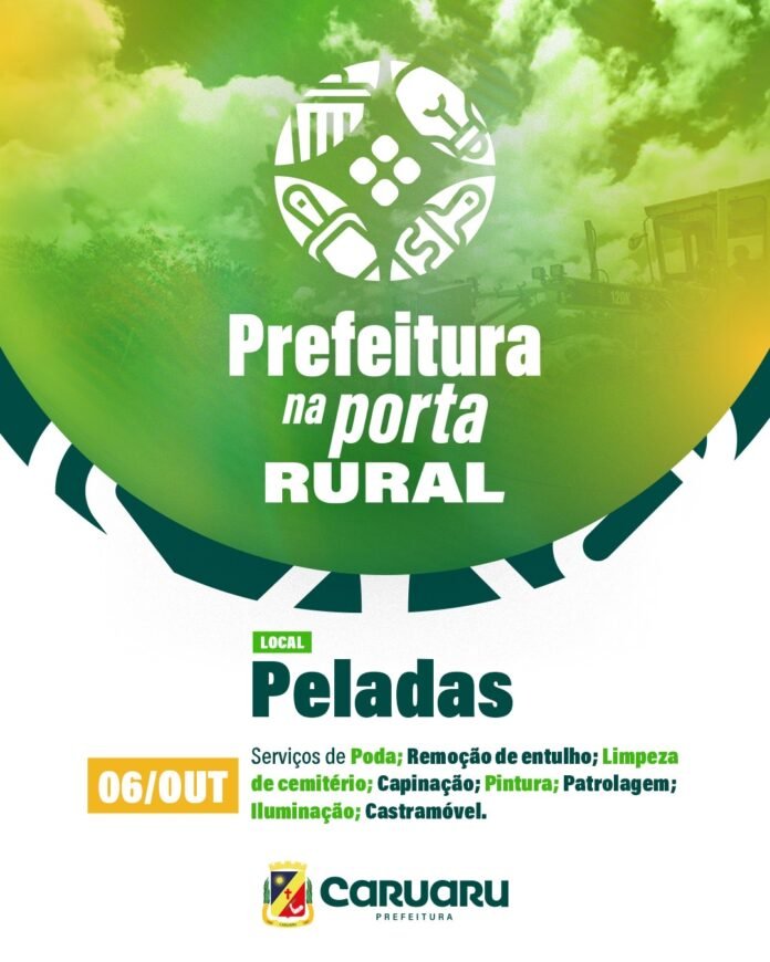 A Prefeitura de Caruaru realiza, na próxima segunda-feira (6), a primeira edição do programa “Prefeitura na Porta Rural”, que acontecerá na comunidade de Peladas. O programa, já consolidado na zona urbana, agora passa a contemplar as áreas rurais, em parceria entre a Secretaria de Serviços Públicos (Sesp) e a Secretaria de Desenvolvimento Rural (SDR).