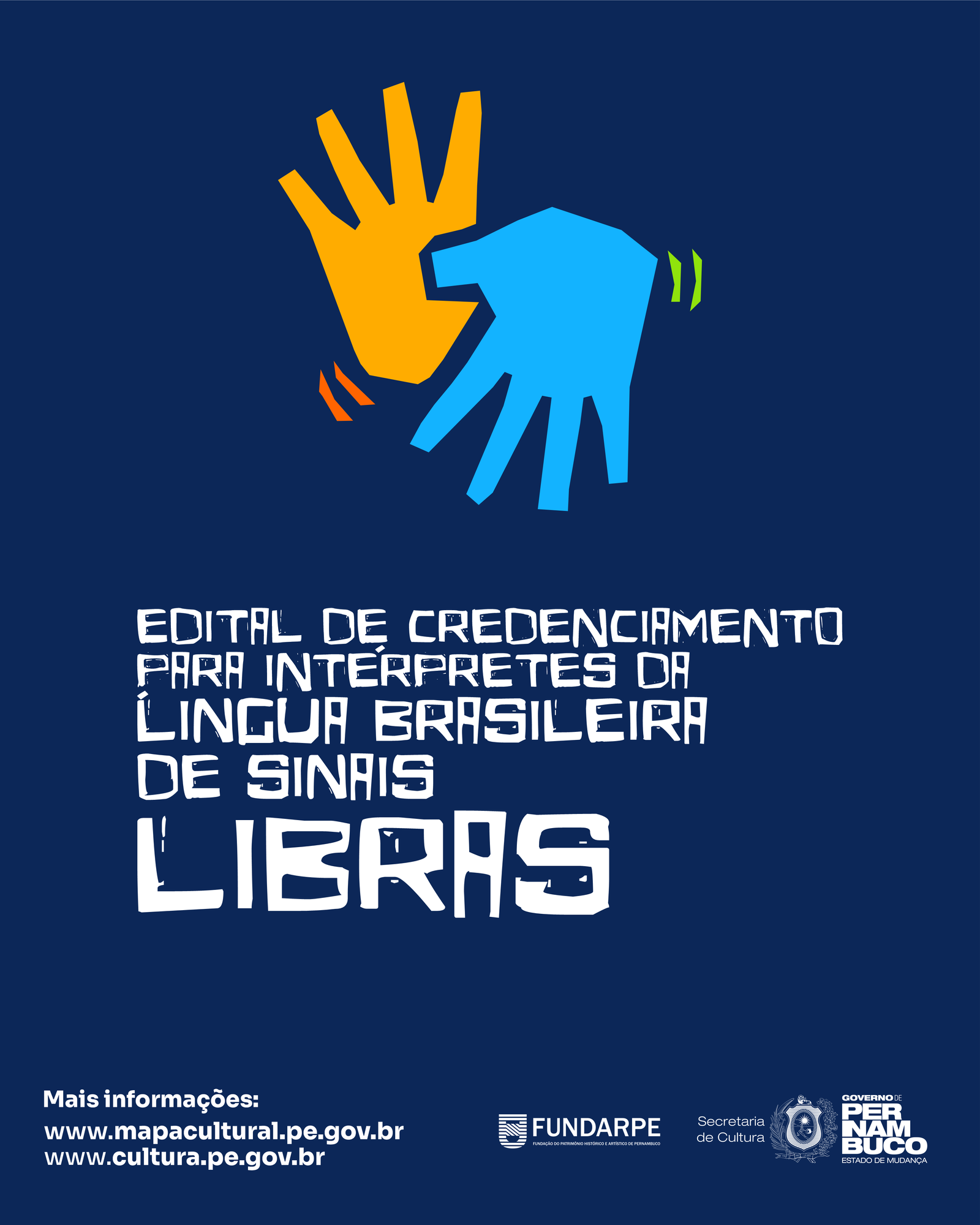 O Governo de Pernambuco, por meio da Fundação do Patrimônio Histórico e Artístico de Pernambuco (Fundarpe), divulgou nesta quinta-feira (30), o lançamento do Edital de Credenciamento para Intérpretes da Língua Brasileira de Sinais (Libras) – Edital de Credenciamento nº 001/2025. A convocatória tem como objetivo o credenciamento de pessoas físicas visando à prestação de serviços de intérprete da Língua Brasileira de Sinais (Libras) para atender os eventos realizados e/ou apoiados pela Fundarpe. As inscrições têm início nesta sexta-feira (31) e ficam abertas, de forma contínua, até as 16h59 do dia 30 de janeiro de 2026, exclusivamente pela plataforma Mapa Cultural de Pernambuco (https://www.mapacultural.pe.gov.br/), e o primeiro resultado preliminar já será divulgado no próximo dia 7 de fevereiro.