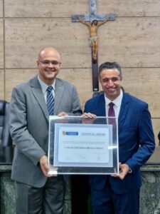 Logo depois, Mano do Som complementou as palavras do colega, enfatizando a dimensão humana e técnica de Carlos: “O vereador Bruno fez uma ótima síntese sobre quem é Carlos Braga. Eu acrescento que, além da competência, ele sempre mostrou sensibilidade e compromisso com as pessoas. Caruaru se beneficiou muito do trabalho dele, e Pernambuco continua ganhando. Esta Casa tem orgulho de reconhecer a contribuição de alguém que transforma a gestão pública em um verdadeiro instrumento de mudança.”