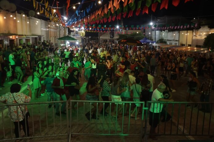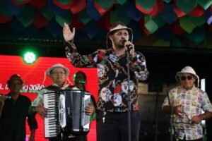 O primeiro show da tarde foi do Trio Vozes da Seca, que contou com a participação especial de Jota Lima, um dos homenageados do São João. “Jota é meu tio e engrandeceu demais a nossa apresentação. Foi uma forma de preservarmos essa grande cultura, que começou, de fato, na zona rural”, disse Natan Lima, integrante do trio.
