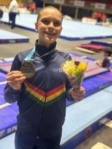Ao longo da competição, a ginasta participou das provas de solo, trave, salto e paralelas, mostrando equilíbrio, leveza e determinação. Foi no salto, porém, que ela alcançou o ponto mais alto de sua participação, garantindo um lugar no pódio e levando para casa o bronze, resultado de muito treino e superação.