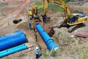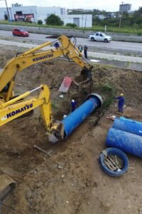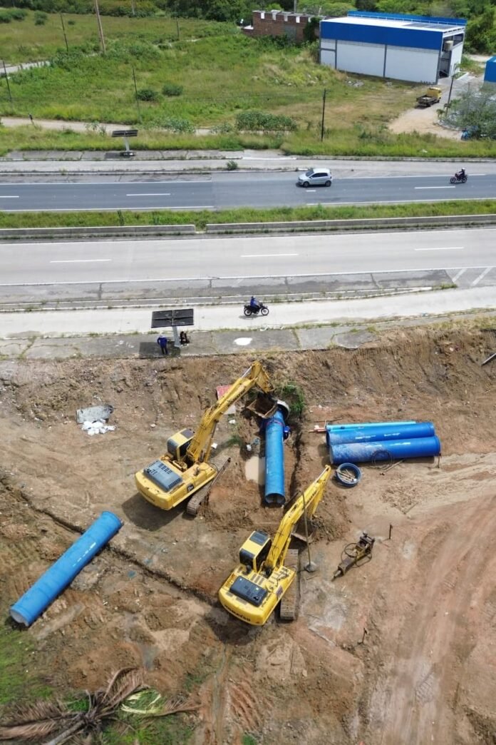 A obra da Adutora do Agreste alcançou uma etapa decisiva nesta quinta-feira (2), em Caruaru, no Agreste de Pernambuco. A Companhia Pernambucana de Saneamento (Compesa) concluiu a travessia de nove tubulações de grande porte sob o km 126 da BR-232, por meio de uma estrutura metálica conhecida como ARMCO — um túnel construído especialmente para dar passagem ao empreendimento. Foram instalados 63 metros de tubos com 1.200 milímetros de diâmetro, capazes de transportar quase 1.500 litros de água por segundo do Rio São Francisco para o atendimento de Caruaru e outros 13 municípios do Agreste.