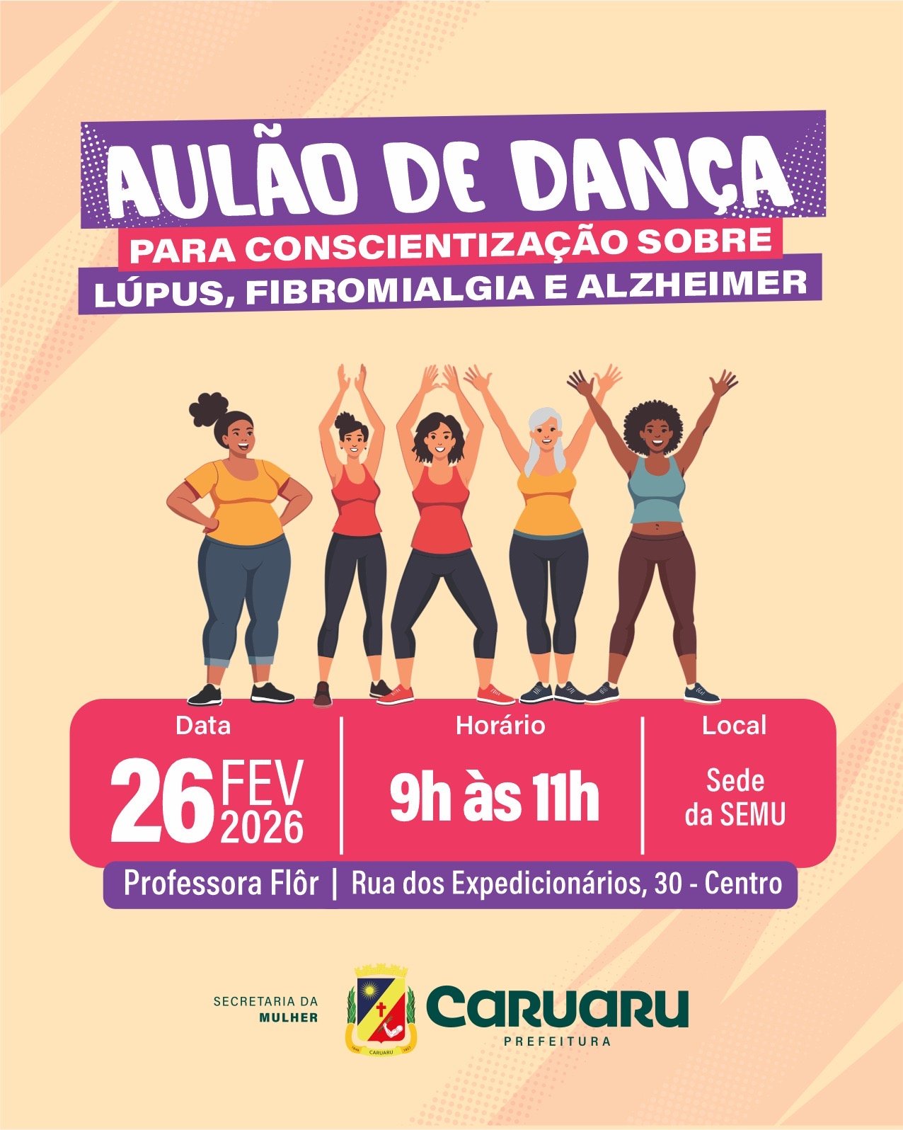 A dança como ferramenta de cuidado, informação e fortalecimento feminino. É com essa proposta que a Prefeitura de Caruaru realiza, na próxima quinta-feira (26), das 9h às 11h, um Aulão de Dança aberto ao público.