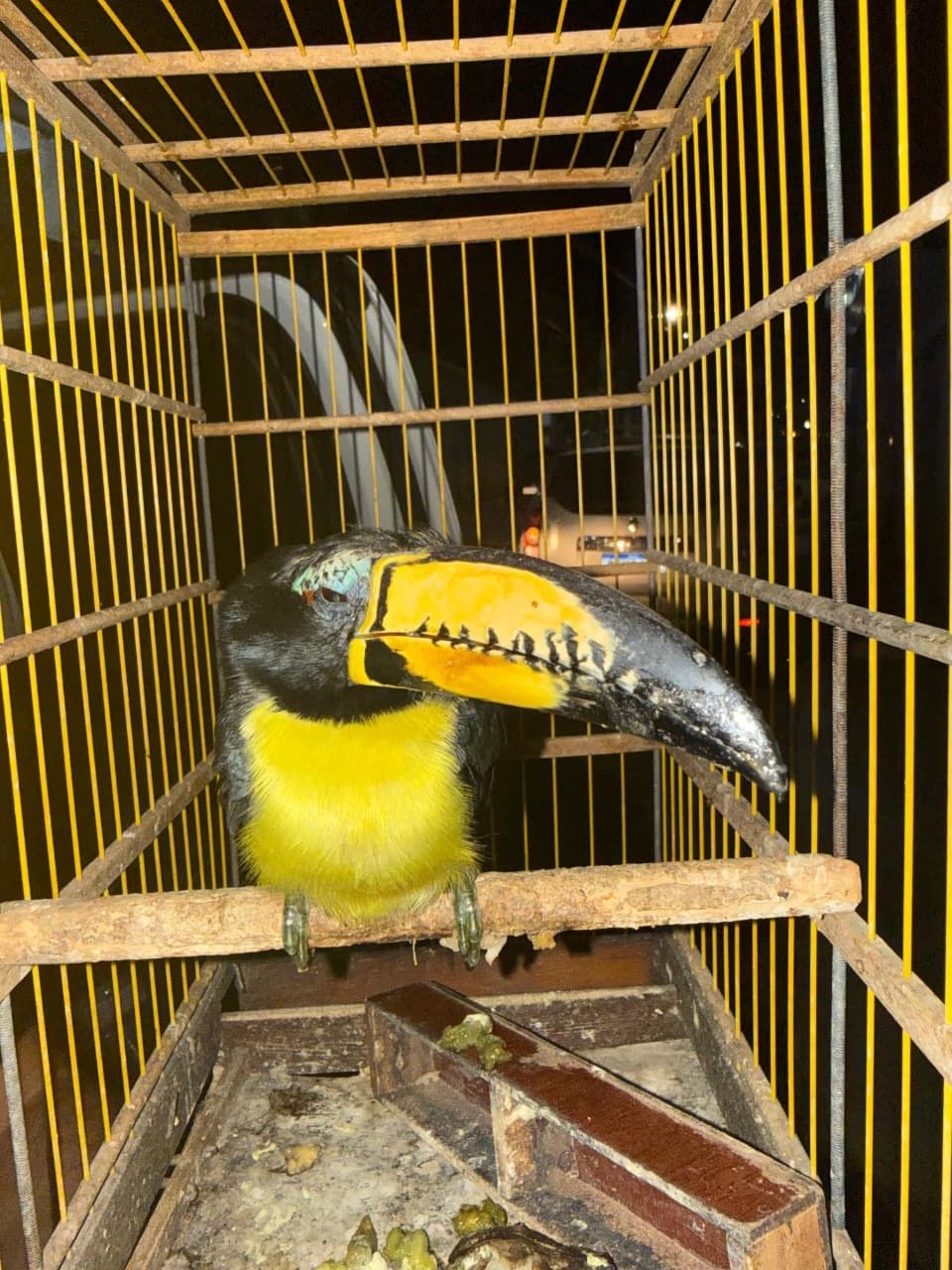 A ocorrência foi registrada na Rua Zumbi dos Palmares, após a equipe da Patrulha Rural receber a informação de que um popular desejava realizar a entrega espontânea do animal. Ao chegar ao local, os agentes confirmaram a situação e identificaram a ave como sendo um araçari, espécie pertencente à família dos tucanos.