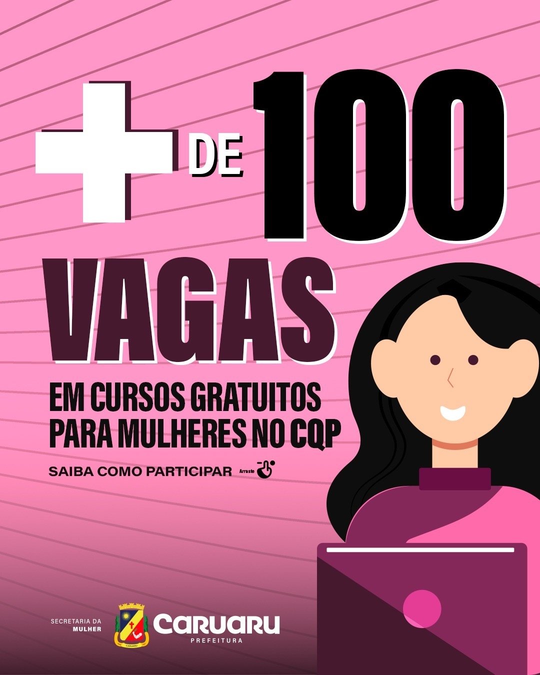 As mulheres de Caruaru terão novas oportunidades de qualificação profissional com a abertura de mais de 100 vagas em cursos gratuitos ofertados pela Secretaria da Mulher, por meio do Centro de Qualificação Profissional (CQP).