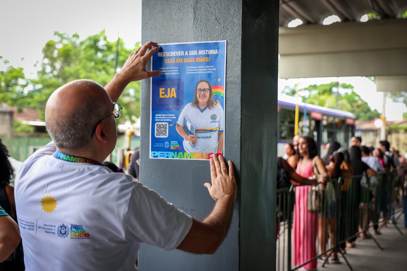 O “Dia D” de matrícula foi realizado na terça-feira (3), com a intensificação do acolhimento, da orientação e da divulgação das vagas em todas as GREs e unidades de ensino. Ao longo da semana, a mobilização também conta com ações externas em pontos estratégicos de grande circulação em todas as regiões do estado, ampliando o alcance da iniciativa e garantindo que mais pessoas tenham acesso às informações sobre a EJA. No Recife, a ação foi realizada nos principais terminais integrados da capital, fortalecendo a busca ativa e aproximando a população que deseja retomar os estudos.