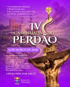 A Diocese de Caruaru realizará, no próximo dia 15 de março de 2026, a IV Caminhada do Perdão, evento religioso que integra a programação quaresmal da Igreja Católica no município.