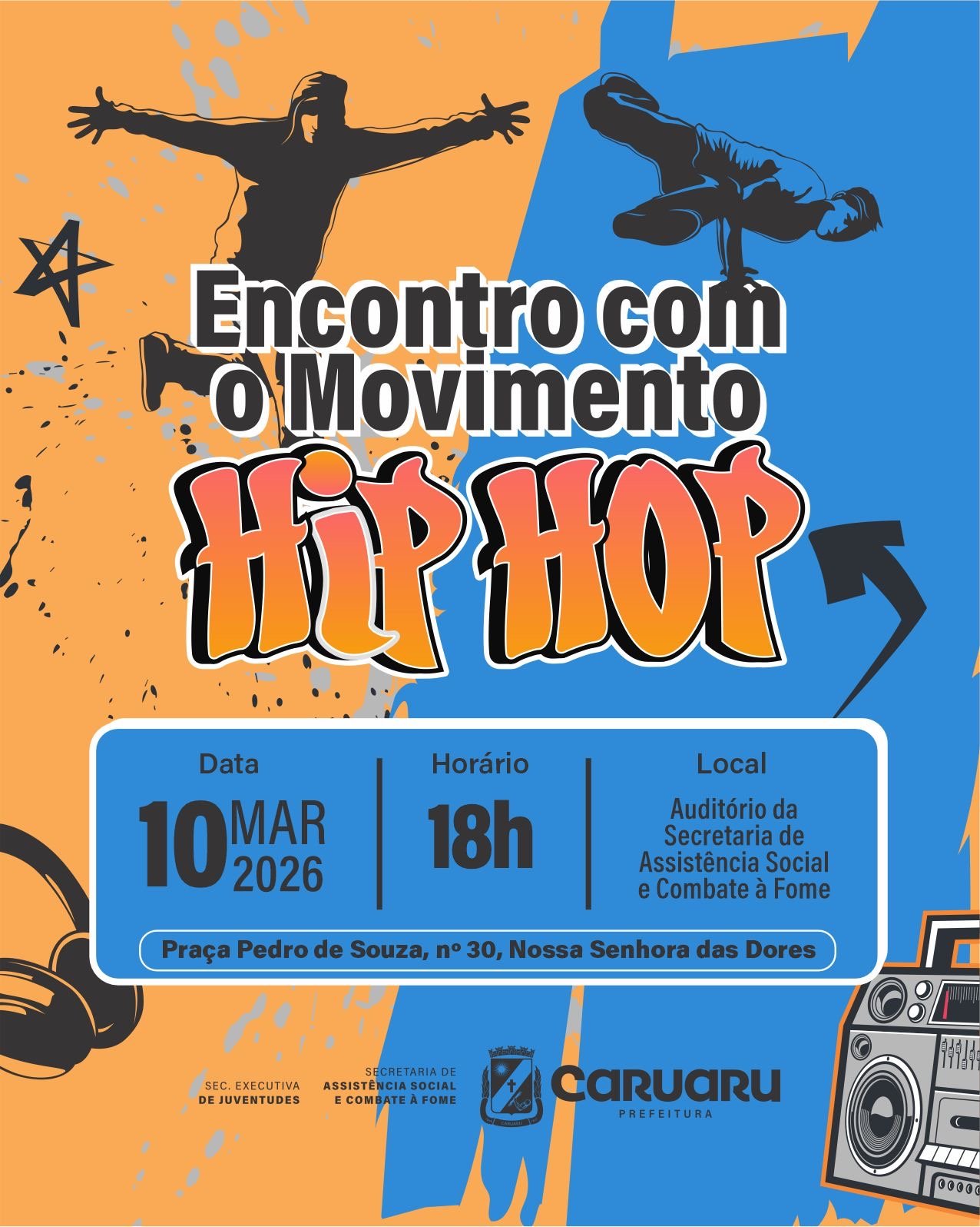 O Encontro com o Movimento Hip-Hop de Caruaru será realizado nesta terça-feira (10), às 18h, no auditório da Secretaria de Assistência Social e Combate à Fome (SAS), localizado na Praça Pedro de Souza, no bairro Nossa Senhora das Dores.