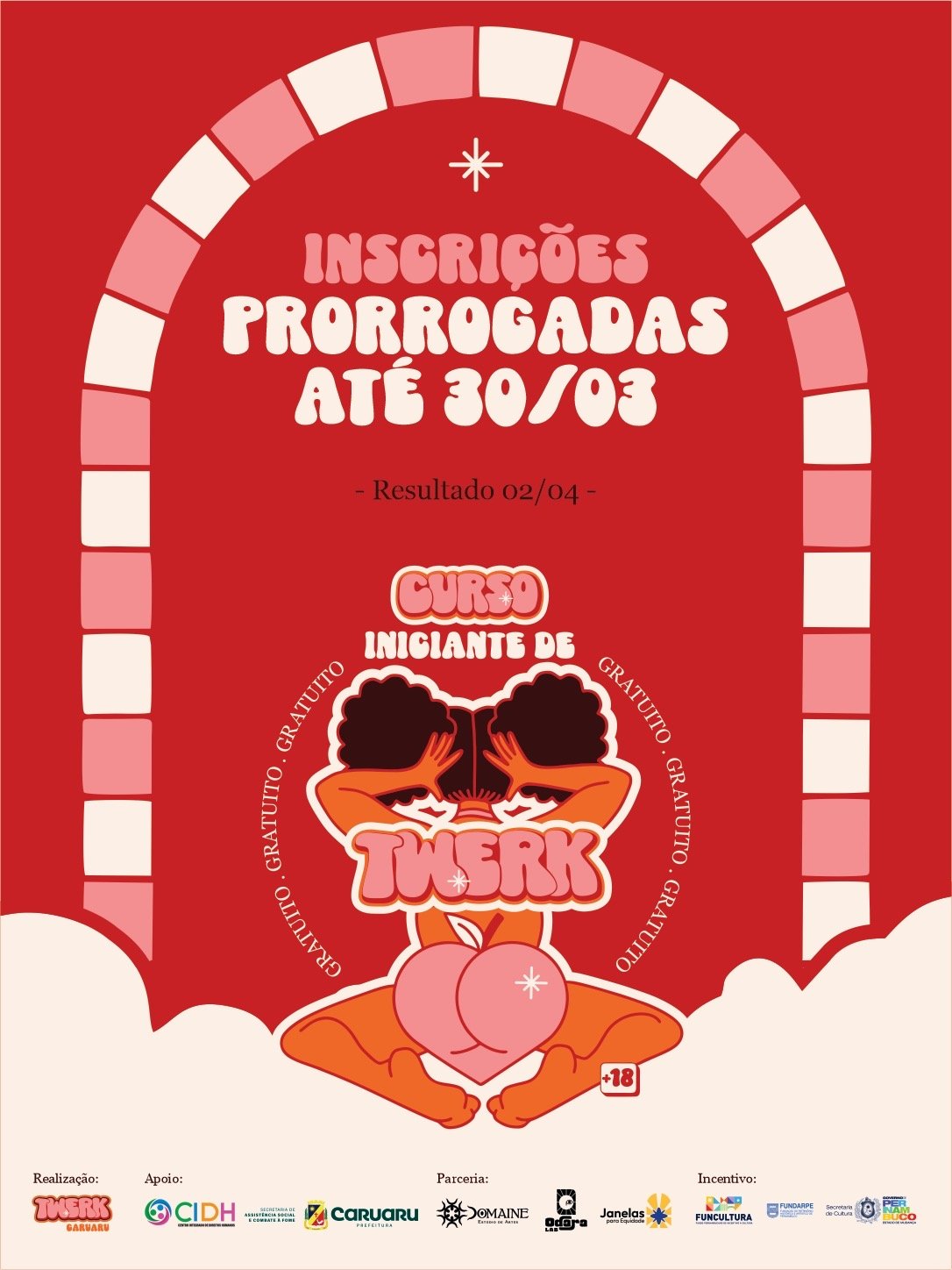 Estão abertas, até o dia 30 de março, as inscrições para o Curso Iniciante de Twerk, realizado em Caruaru. A formação é gratuita e voltada para mulheres e pessoas LGBTQIAPN+ a partir de 18 anos, interessadas em experimentar a dança como linguagem cultural e forma de expressão.