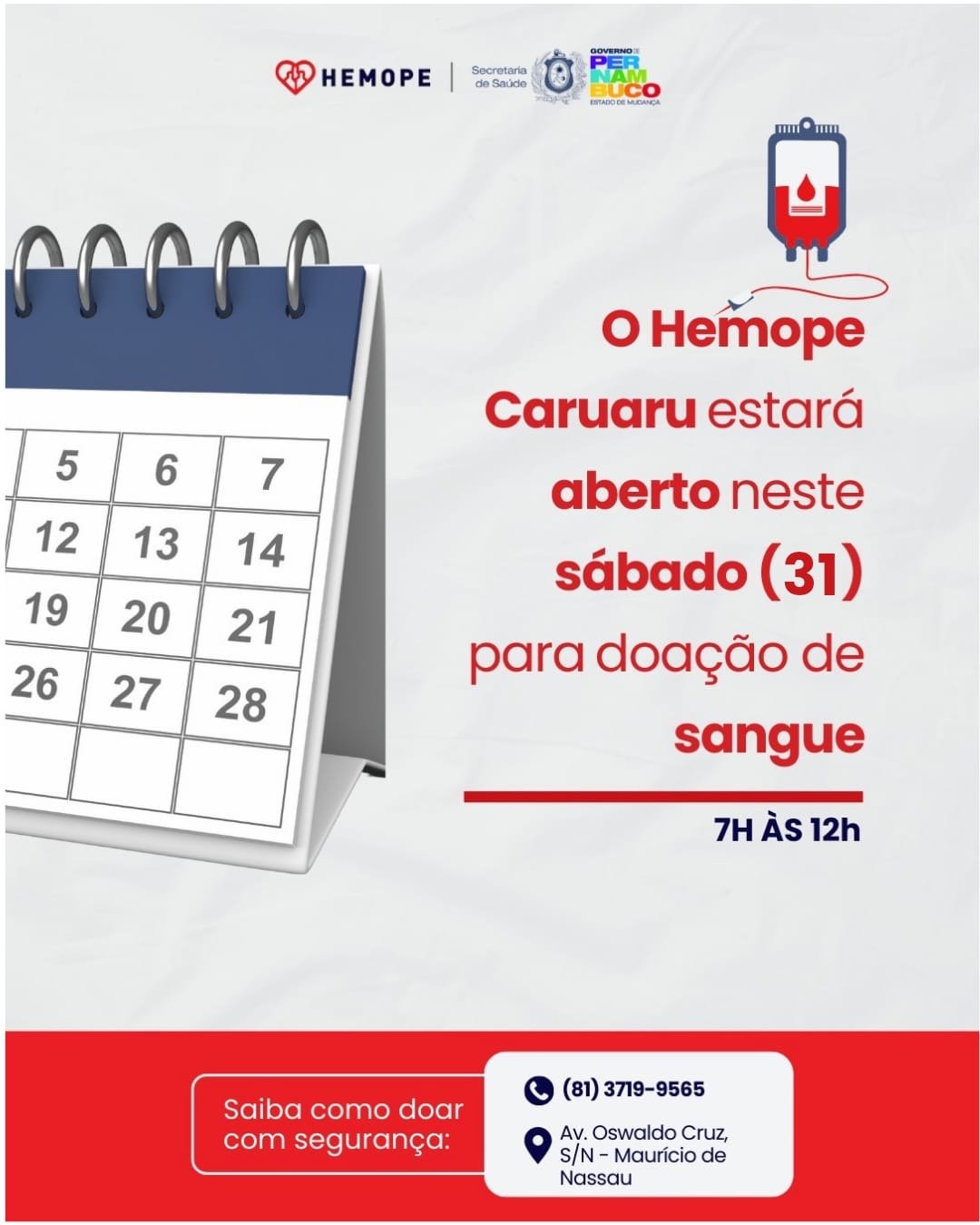 📍 O Hemope Caruaru fica na Av. Oswaldo Cruz, s/n – Maurício de Nassau.