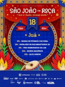 O São João na Roça continua neste sábado (18) no Sítio Juá, com Banda Aquárius, Alex Junior e apresentações culturais. Programação: https://www.instagram.com/p/DWEf2Wzjp2A/?igsh=MWR0Zmp5cXJ1cXlzYw==