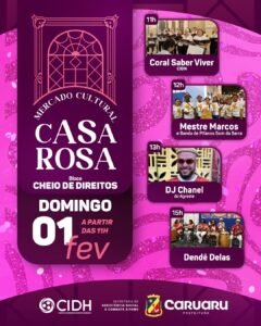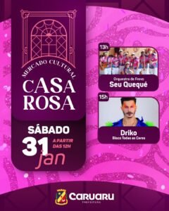 Após o recesso de fim de ano, o Mercado Cultural Casa Rosa está prestes a iniciar seu funcionamento de 2026. No dia 31 de janeiro, o espaço reabre as portas, com a abertura da programação do Pré-Carnaval Multicultural de Caruaru, reunindo música, cultura popular e ações de cidadania.