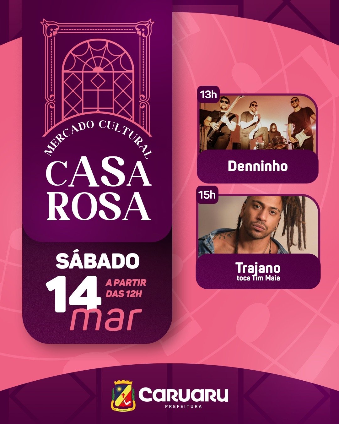 O Mercado Cultural Casa Rosa, em Caruaru, preparou uma programação especial para este fim de semana, reunindo artistas locais que vão tocar da MPB ao forró, garantindo música ao vivo e animação para o público a partir das 12h.