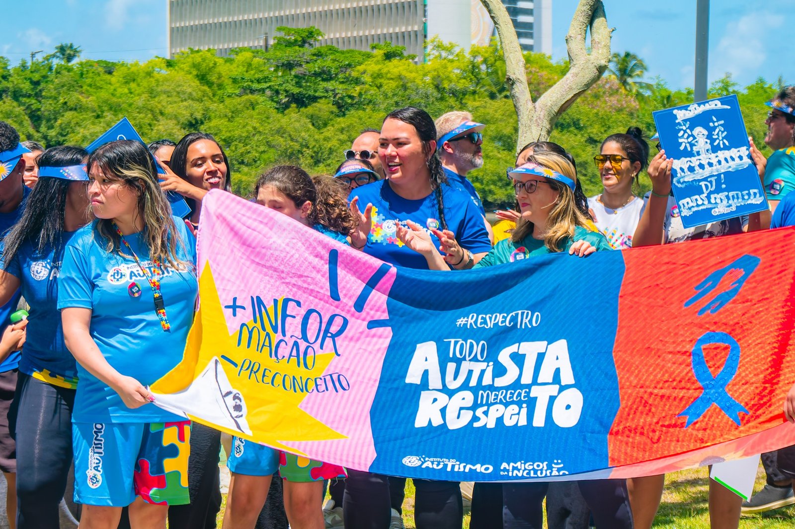 A proposta é simples e potente: reunir famílias, pessoas atendidas pelo instituto e colaboradores em um momento coletivo de informação e visibilidade. Em roda, os participantes compartilham experiências, levantam cartazes e conversam com a população sobre a importância de compreender e respeitar as pessoas autistas.