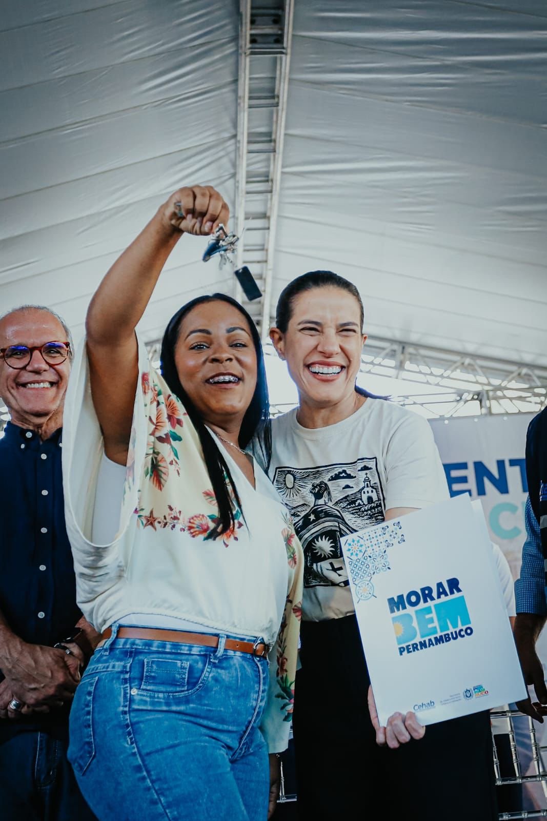 Fortalecendo a habitação de interesse social no Recife, a governadora Raquel Lyra entregou, nesta quarta-feira (22), em Dois Unidos, Zona Norte da capital pernambucana, as chaves de 125 unidades habitacionais às famílias do Morada Capibaribe Condomínio 1 (módulos 1 e 2), beneficiadas pelo Programa Morar Bem PE – Entrada Garantida. Nessa modalidade, os beneficiários recebem um subsídio de até R$ 20 mil do Governo de Pernambuco para a aquisição de imóveis construídos dentro do programa Minha Casa Minha Vida (MCMV), na categoria do Fundo de Garantia do Tempo de Serviço (FGTS).