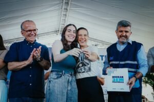 Recebendo as chaves da sua residência das mãos da governadora Raquel Lyra, a beneficiária Marília Gabriela, 32 anos, mãe de duas crianças, falou da realização de ter sua primeira casa própria. “É uma grande conquista para mim. Para nós, mulheres, e no meu caso, mãe solo, tudo se torna ainda mais difícil. O Programa Morar Bem foi fundamental para conquistar esse sonho, sem esse subsídio, eu não conseguiria”, afirmou Marília.