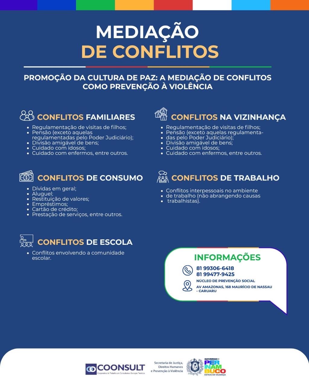 Em Caruaru, o Governo do Estado de Pernambuco, em parceria com a empresa Coonsult e sob a coordenação da Secretaria de Justiça e Direitos Humanos e Prevenção à Violência, tem a satisfação de apresentar o Programa Mediação de Conflitos Itinerante, uma iniciativa revolucionária destinada a promover a cultura da paz.