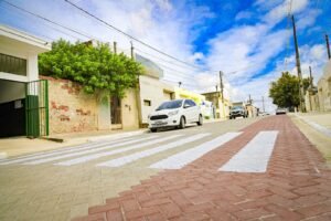 As intervenções realizadas no local potencializam a mobilidade através da importante via, onde foi implantado todo o sistema de drenagem, construídas calçadas e, claro, foi instalada pavimentação – no modelo de piso intertravado, que garante qualidade e eficiência, e contribui para a absorção de parte da água das chuvas, por exemplo.