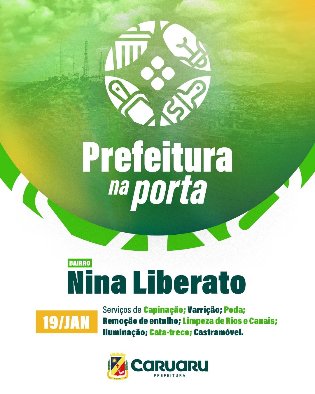 A Prefeitura de Caruaru, por meio da Secretaria de Serviços Públicos (Sesp), realiza, a partir do dia 19 de janeiro, no bairro Nina Liberato, a primeira edição de 2026 do programa “Prefeitura na Porta”, levando um mutirão de serviços de limpeza, manutenção e zeladoria urbana para a comunidade.