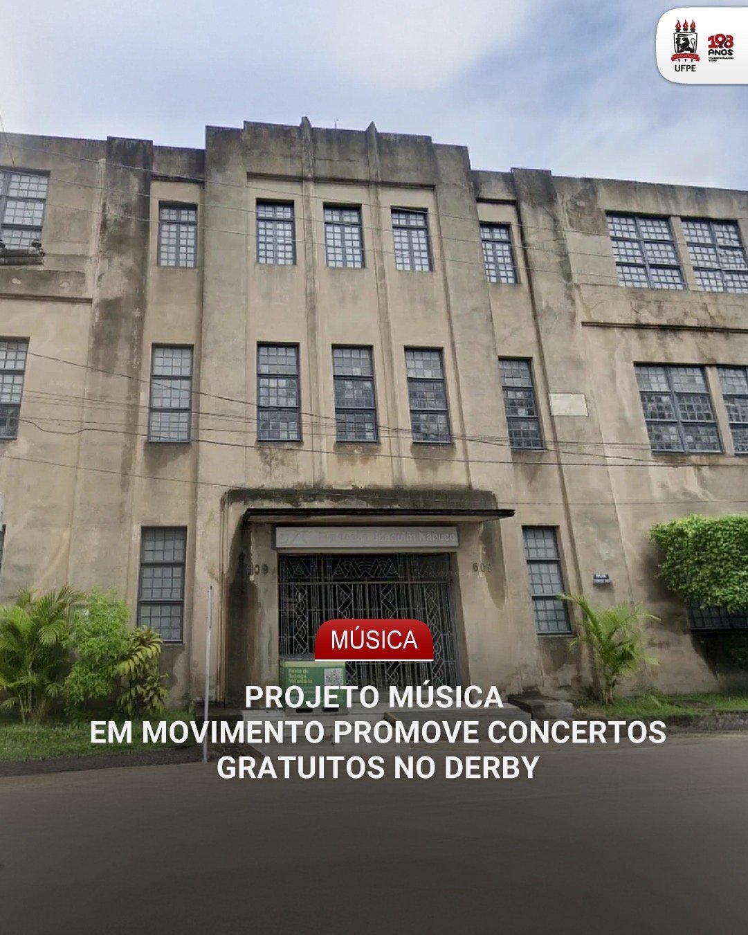 A Universidade Federal de Pernambuco (UFPE), por meio da Pró-Reitoria de Cultura (Procult) e em parceria com a Fundação Joaquim Nabuco (Fundaj), realiza o projeto Música em Movimento. A iniciativa consiste em uma série de recitais e concertos gratuitos, sempre no horário das 11h, que ocorrem na Sala João Cardoso Ayres, no campus Derby da Fundaj (Rua Henrique Dias, nº 609). O evento é coordenado por Antonio Nigro, professor do Departamento de Música da UFPE e diretor de Artes da Procult. A entrada é aberta ao público e sujeita à lotação do espaço. Confira a programação completa abaixo.