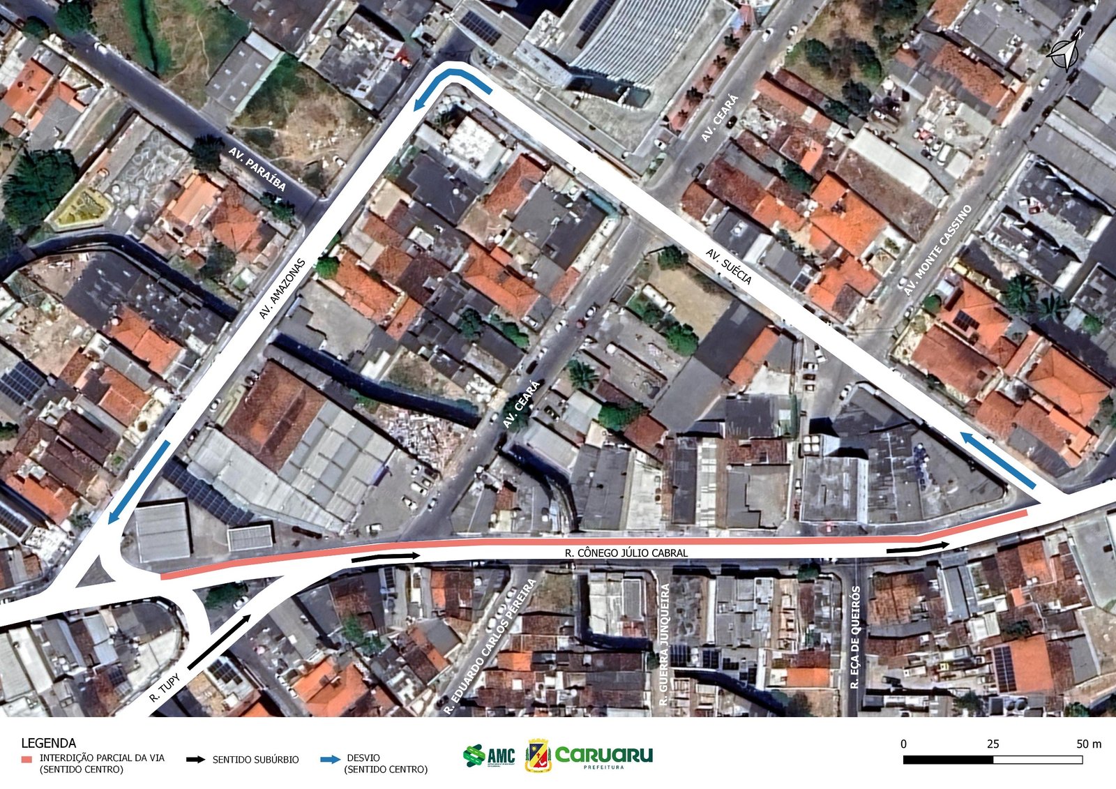 A Autarquia de Mobilidade de Caruaru (AMC) informa que, a partir da segunda-feira (23), um trecho da Rua Cônego Júlio Cabral no bairro do Salgado será interditado parcialmente para a realização de uma obra de uma empresa privada.